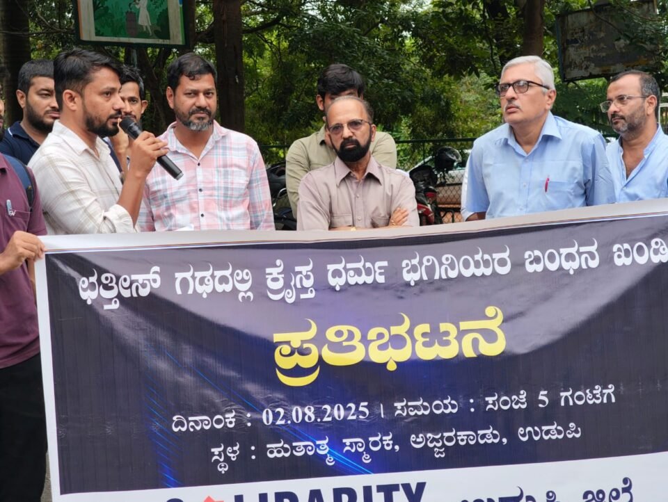 ಅವರು ಇಂದು ಉಡುಪಿಯ ಅಜ್ಜರಕಾಡಿನ ಹುತಾತ್ಮ ಸ್ಮಾರಕ ಬಳಿ “ಛತ್ತೀಸ್ಗಢದಲ್ಲಿ ಕ್ರೈಸ್ತ ಧರ್ಮ ಭಗಿನಿಯರ ಮೇಲೆ ಸುಳ್ಳು ಪ್ರಕರಣ” ದಾಖಲಿಸಿ ಬಂಧಿಸಿರುವ ಕ್ರಮವನ್ನು ಖಂಡಿಸಿ ಸಾಲಿಡಾರಿಟಿ ಯೂತ್’ಮೂವ್ಮೆಂಟ್ ಉಡುಪಿ ಜಿಲ್ಲೆ ಆಯೋಜಿಸಿದ್ದ ಪ್ರತಿಭಟನಾ ಸಭೆಯಲ್ಲಿ ಮಾತನಾಡಿದರು.
