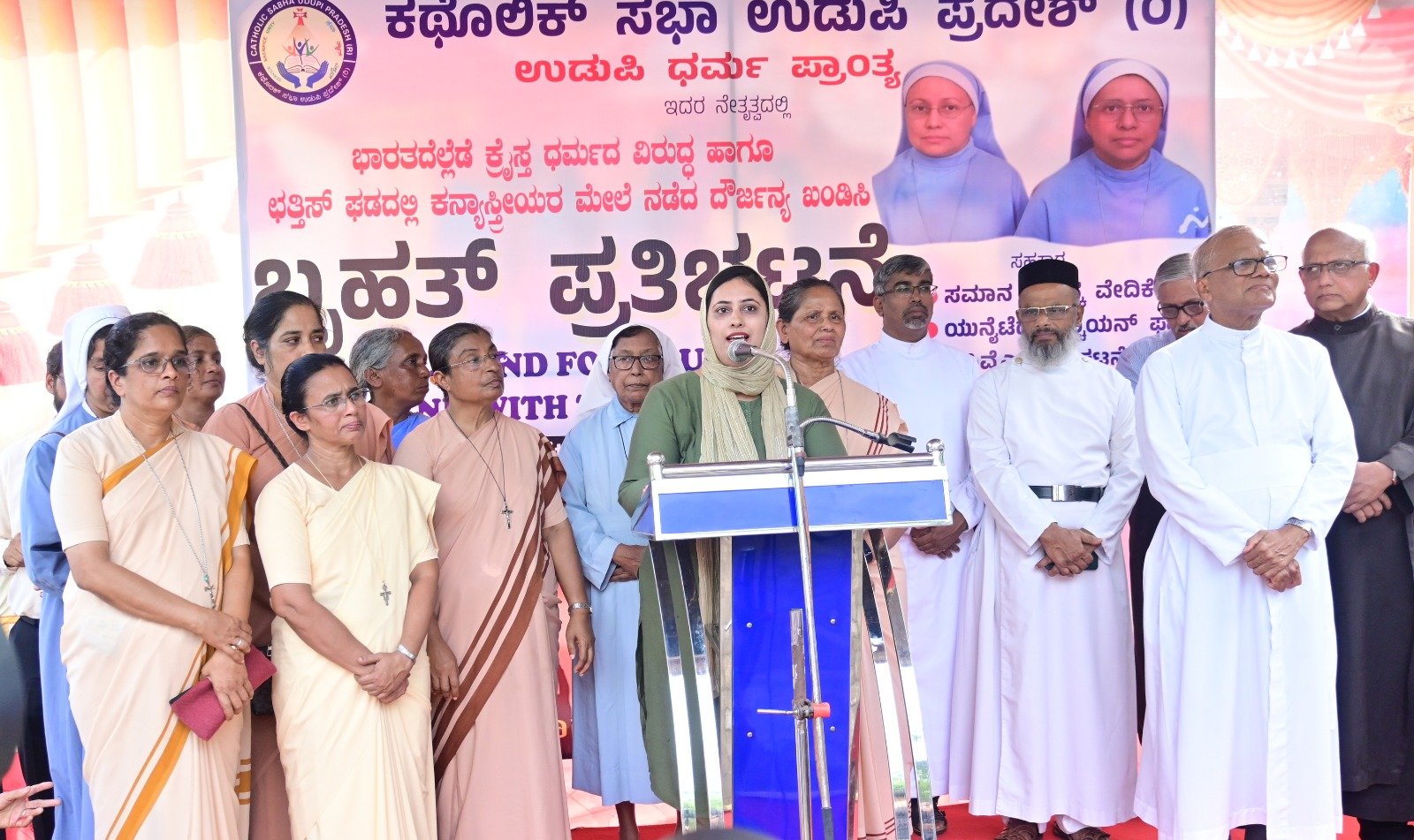 ಪ್ರತಿಭಟನಾ ಸಭೆಯಲ್ಲಿ ಪ್ರಾಸ್ತಾವಿಕವಾಗಿ ಮಾತನಾಡಿದ ಕಥೊಲಿಕ್ ಸಭಾ ಉಡುಪಿ ಪ್ರದೇಶದ ಅಧ್ಯಕ್ಷರಾದ ರೊನಾಲ್ಡ್ ಆಲ್ಮೇಡಾ ಬಂಧಿತ ಧರ್ಮಭಗಿನಿಯರನ್ನು ಷರತ್ತುಗಳ ಮೇಲೆ ರಾಷ್ಟ್ರೀಯ ತನಿಖಾ ದಳದ ವಿಶೇಷ ನ್ಯಾಯಾಲಯ ಜಾಮೀನು ಮಂಜೂರುಗೊಳಿಸಿದೆ ಆದರೆ ಅವರ ಮೇಲೆ ಹಾಕಲಾಗಿರುವ ಸುಳ್ಳು ಮೊಕದ್ದಮೆಗಳನ್ನು ಹಿಂಪಡೆದಿಲ್ಲ. ಅಲ್ಲದೆ ಧರ್ಮಭಗಿನಿಯರನ್ನು ಛತ್ತೀಸ್ ಘಡದ ದುರ್ಗ ರೈಲು ನಿಲ್ದಾಣದಲ್ಲಿ ಬಲಪಂಥೀಯ ಸಂಘಟನೆಗಳು ಅಮಾನವೀಯವಾಗಿ ನಡೆಸಿಕೊಂಡಿದ್ದು ಆ ಸಂಘಟನೆಗಳ ವಿರುದ್ದ ಕೂಡ ಯಾವುದೇ ರೀತಿ ಕ್ರಮ ಕೈಗೊಂಡಿಲ್ಲ. ಇದೊಂದು ಕೇವಲ ಕಣ್ಣೊರೆಸುವ ತಂತ್ರವಾಗಿದ್ದು ಕ್ರೈಸ್ತ ಸಮುದಾಯದ ಬೇಡಿಕೆಗಳಿಗೆ ಛತ್ತೀಸ್ ಘಡದ ರಾಜ್ಯ ಸರಕಾರ ಹಾಗೂ ಕೇಂದ್ರ ಸರಕಾರ ಸೂಕ್ತವಾಗಿ ಸ್ಪಂದಿಸಬೇಕು ಎನ್ನುವ ನಿಟ್ಟಿನಲ್ಲಿ ನಮ್ಮ ಇಂದಿನ ಪ್ರತಿಭಟನೆ ಹಮ್ಮಿಕೊಳ್ಳಲಾಗಿದೆ ಎಂದರು.