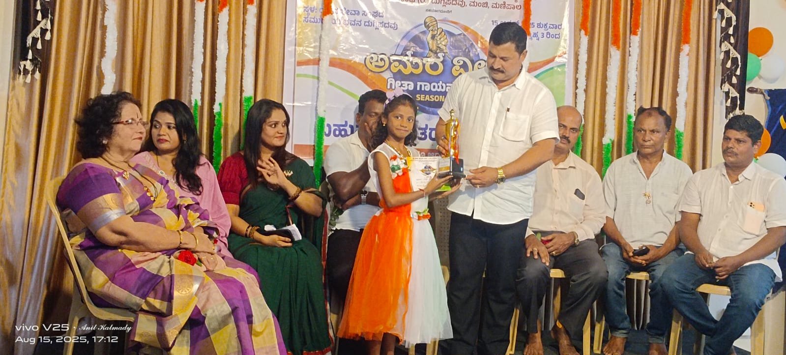 ಉಡಪಿ: ಶ್ರೀ ದುರ್ಗಾ ಮ್ಯೂಸಿಕ್ ಮೀಟ್ ಮಂಚಿ ಮಣಿಪಾಲ ಹಾಗೂ ಲಯನ್ಸ್ ಕ್ಲಬ್ ಮಣಿಪಾಲ ವ್ಯಾಲಿ, ಲಯನ್ಸ್ ಕ್ಲಬ್ ಸಂತೆಕಟ್ಟೆ ಲಯನ್ಸ್ ಕ್ಲಬ್ ಕಲ್ಯಾಣ್ಪುರ, ಯುವಜನ ಸೇವಾ ಸಂಘ ದುಗ್ಲಿ ಪದವು ಮಂಚಿ ಇವರ ಆಶ್ರಯದಲ್ಲಿ 79ನೇ ಸ್ವಾತಂತ್ರ್ಯ ಪ್ರಯುಕ್ತ ಅಮರವೀರ ಗೀತ ಗಾಯನ ಸ್ಪರ್ಧೆ ಏರ್ಪಡಿಸಿ, ಬಹುಮಾನ ವಿತರಣಾ ಕಾರ್ಯಕ್ರಮವು ಯುವ ಸೇವಾ ಸಂಘ ದುಗ್ಲಿ ಪದವು ಮಂಚಿ ಇದರ ಸಭಾಂಗಣದಲ್ಲಿ ನಡೆಯಿತು. ಸಮಾರಂಭದ ಅಧ್ಯಕ್ಷತೆಯನ್ನು ಶ್ರೀ ದುರ್ಗಾ ಮ್ಯೂಸಿಕ್ ಮಿಟ್ ನ ಮುಖ್ಯಸ್ಥರು ಶ್ರೀಮತಿ ತೇಜಸ್ವಿನಿ ಅನಿಲ್ ರಾಜ್ ವಹಿಸಿದ್ದರು