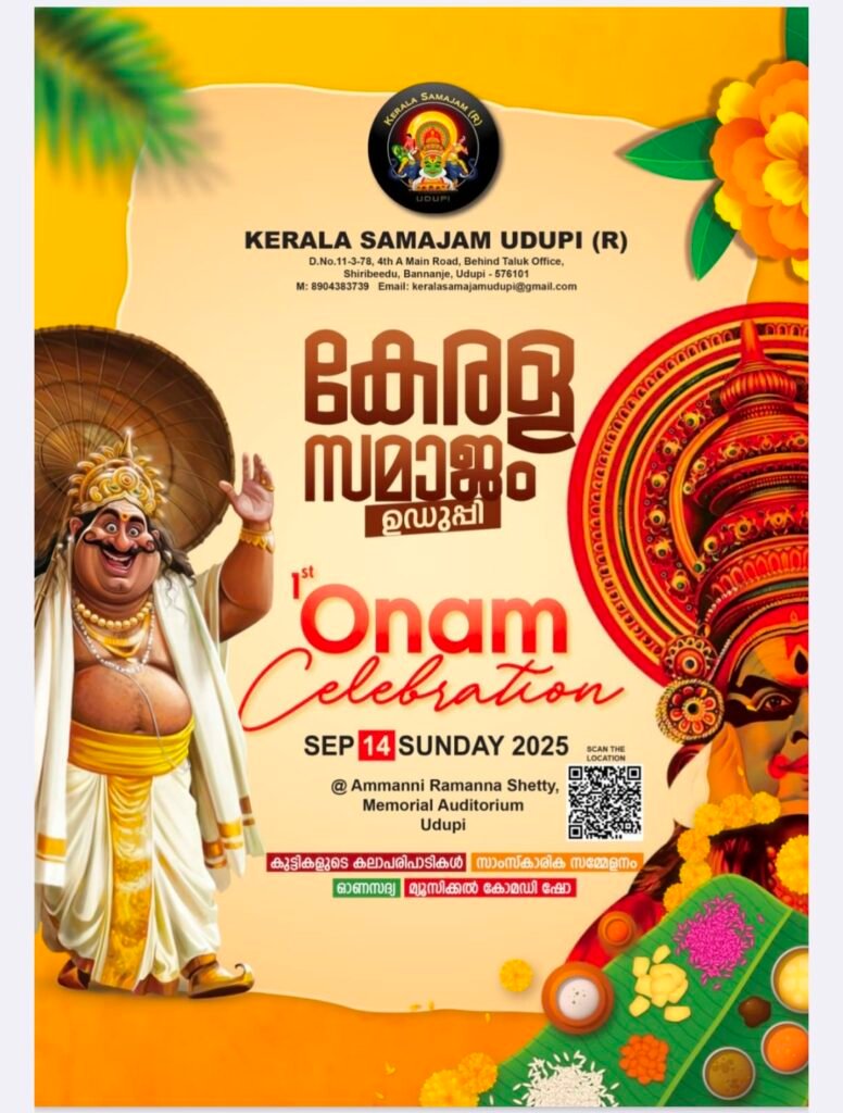 ಉಡುಪಿ: ಕೇರಳ ಸಮಾಜಂ ಉಡುಪಿ ವತಿಯಿಂದ ಇದೇ ಬರುವ ಸೆಪ್ಟಂಬರ್ 14 ರಂದು ಓಣಂ ಸಂಭ್ರಮಾಚರಣೆ ಉಡುಪಿ ಅಮ್ಮಣ್ಣಿ ರಾಮಣ್ಣ ಸಭಾಭವನದಲ್ಲಿ ನಡೆಯಲಿದೆ ಈ ಬಗ್ಗೆ ಕೇರಳ ಸಮಾಜದ ಅಧ್ಯಕ್ಷ ಅರುಣ್ ಕುಮಾರ್ ಮಾಹಿತಿ ನೀಡಿದರು.